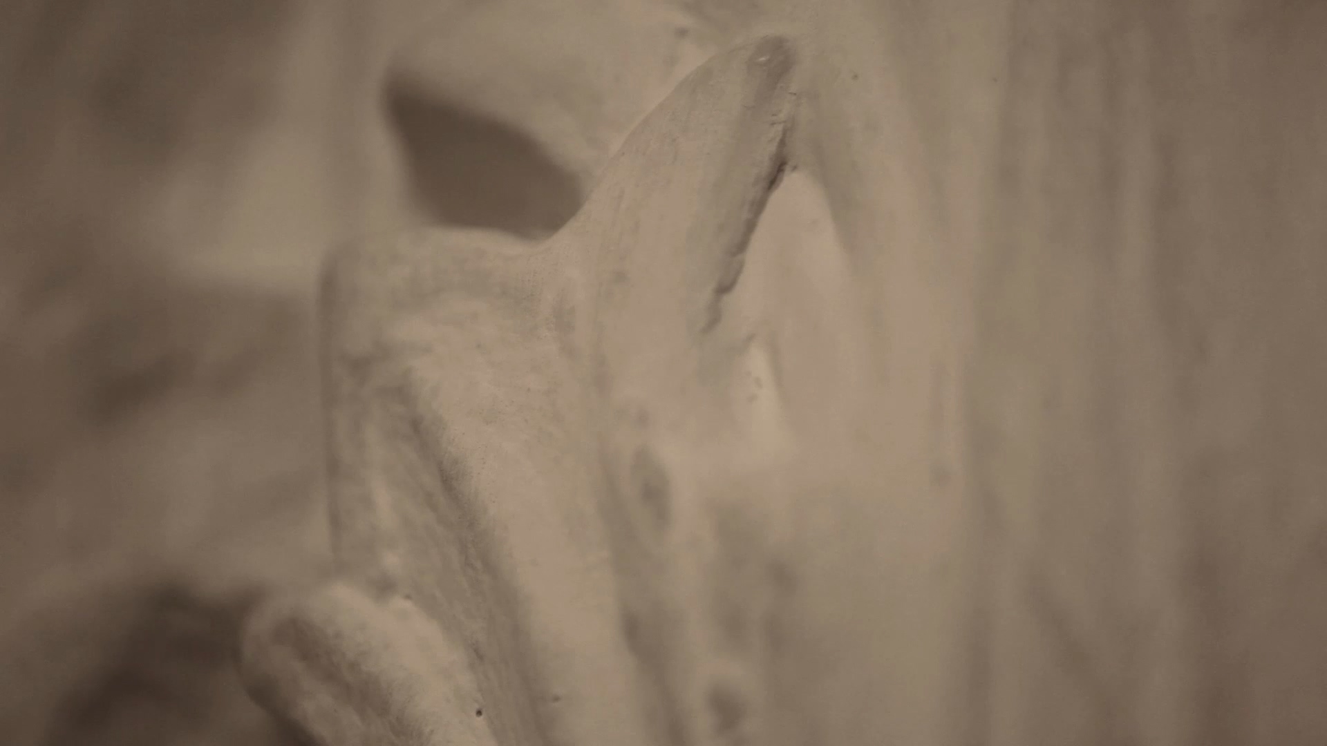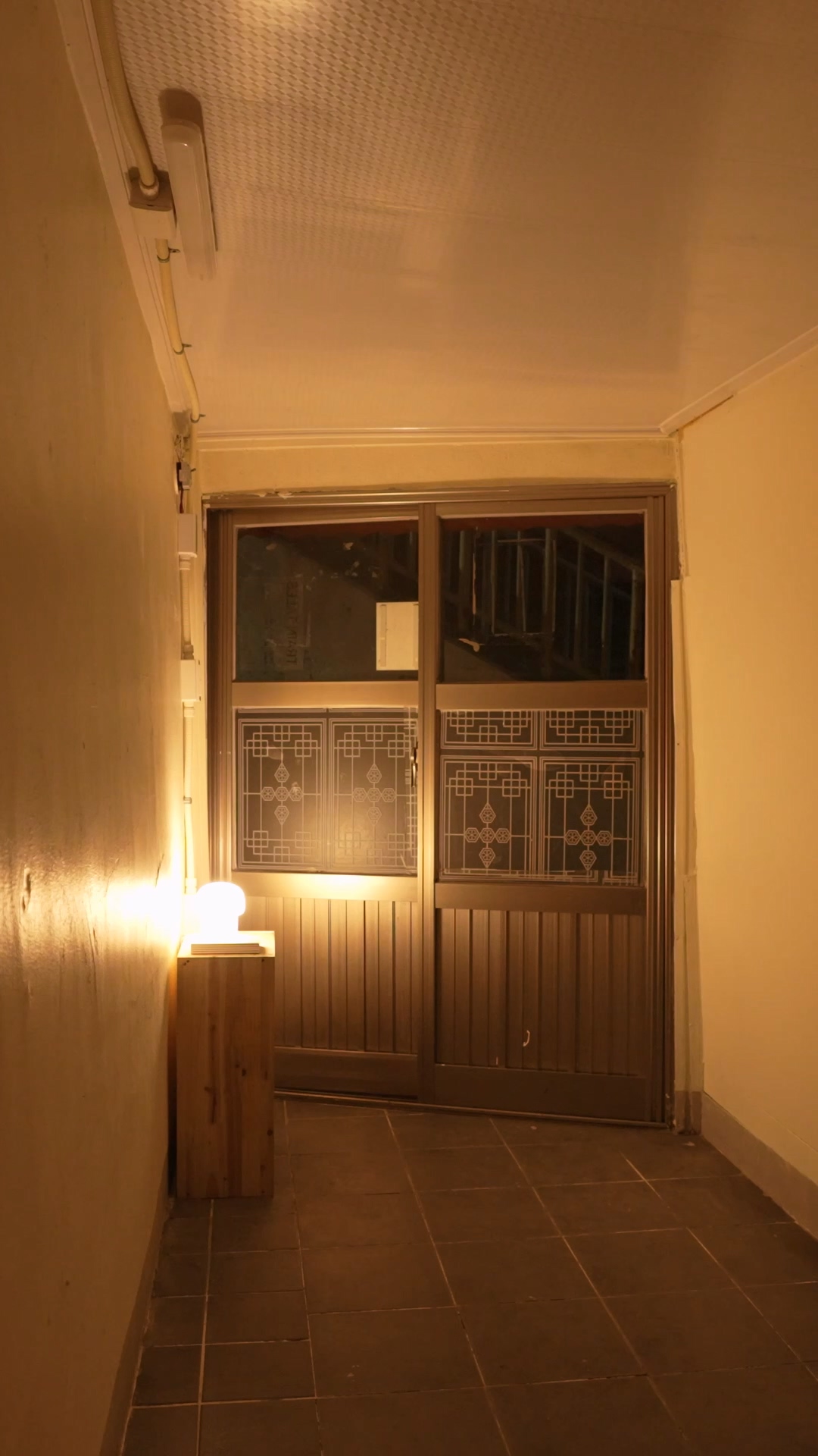 <허구를 위한 조형적 인물>은 <유령의 해>가 촬영되었던 장소 [부산 범일동 65번길 33]에서 전개되는 작품이다. 조형적이고 허구적인 이 시공간은 해체된 영화의 잔해를 보는 듯 느슨함을 지니고 있다. 이 작품에 등장하는 인물은 그 누구도 될 수 있는 어떤 존재다. 이 잔해와 같은 작업을 준비하며 나는 영화를 작업할 때와 조금 다른 입장을 갖게 되었다. 영화는 주어지거나 창조해낸 파편을 고유한 형태 그대로 두는 것이 거의 불가능에 가깝다. 파편들을 어떻게든 조각난 상태로 두고 싶어도 영화라는 형식 내에선 파편들 사이의 작용들이 생겨나고, 그걸 보는 이들은 균열 없는 매끈한 파편의 결합 상태를 마주하게 된다. 나는 이 작업을 통해 장소, 허구, 존재라는 파편이 고유하게 유지되는 시공간을 만들고 싶었다. 이 작품은 극장 바깥에 놓인 잔해 같지만, 이 잔해를 오후 5시에 시작해 저녁 8시에 끝나는 영화라고 가정해보면 어떨까? 동절기의 긴 밤은 늦은 오후부터 이른 저녁 시간 사이에 어둠을 부여한다. 이 작업에 전시라는 명시적 표현을 쓰고 싶지 않았던 이유도 어둠이 부여된 시간에 놓인 영화의 잔해가 또 다른 가정에 영향을 받지 않았으면 했기 때문이다.