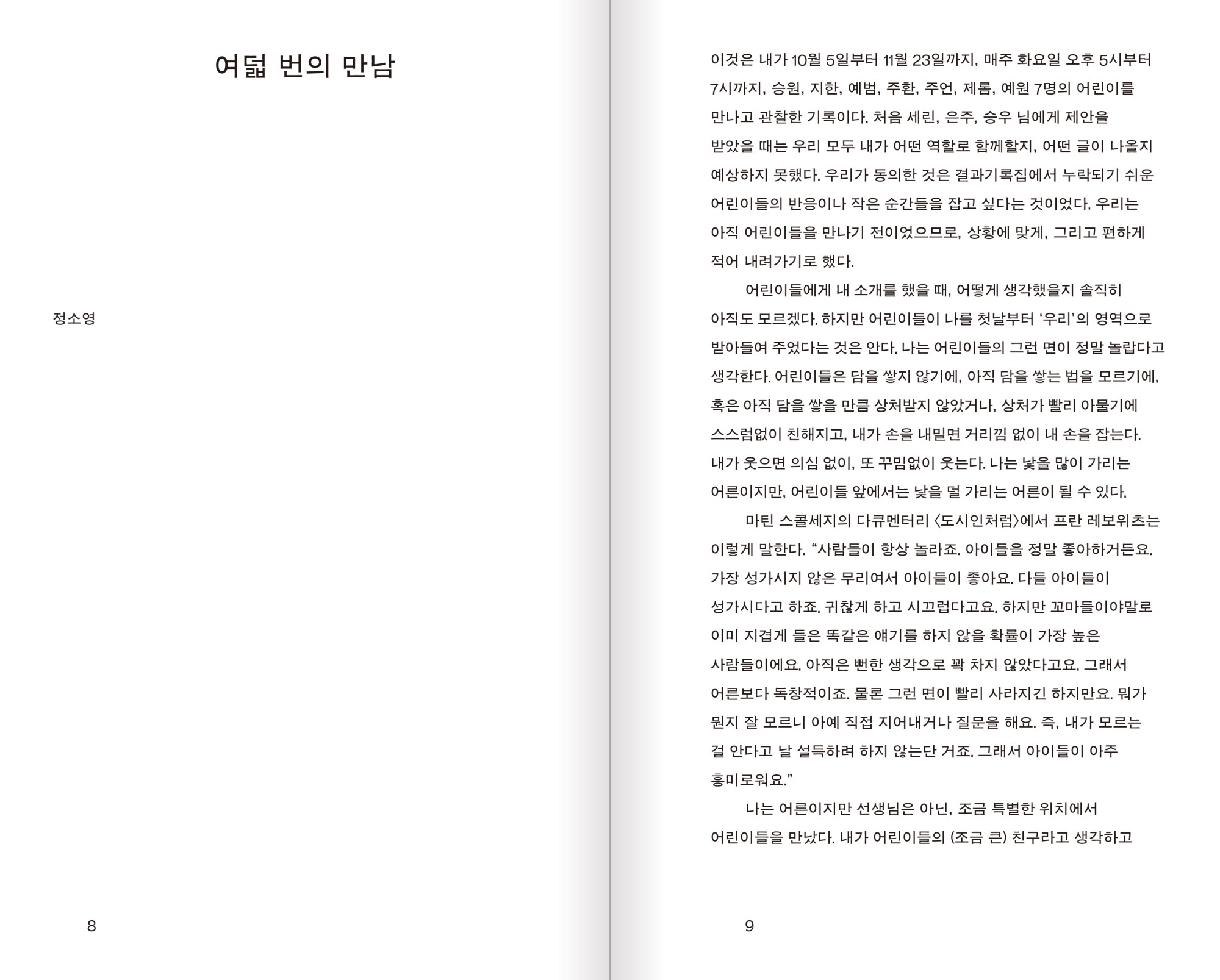한국청소년정책연구원과 국립아시아문화전당, 어린이문화원에서 일한 경험을 바탕으로 어린이와 청소년 문화예술교육에 관심을 갖고 교육현장을 돕기 위해 노력하고 있습니다.