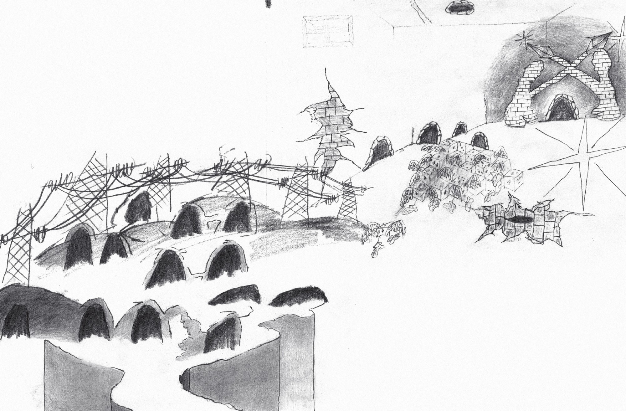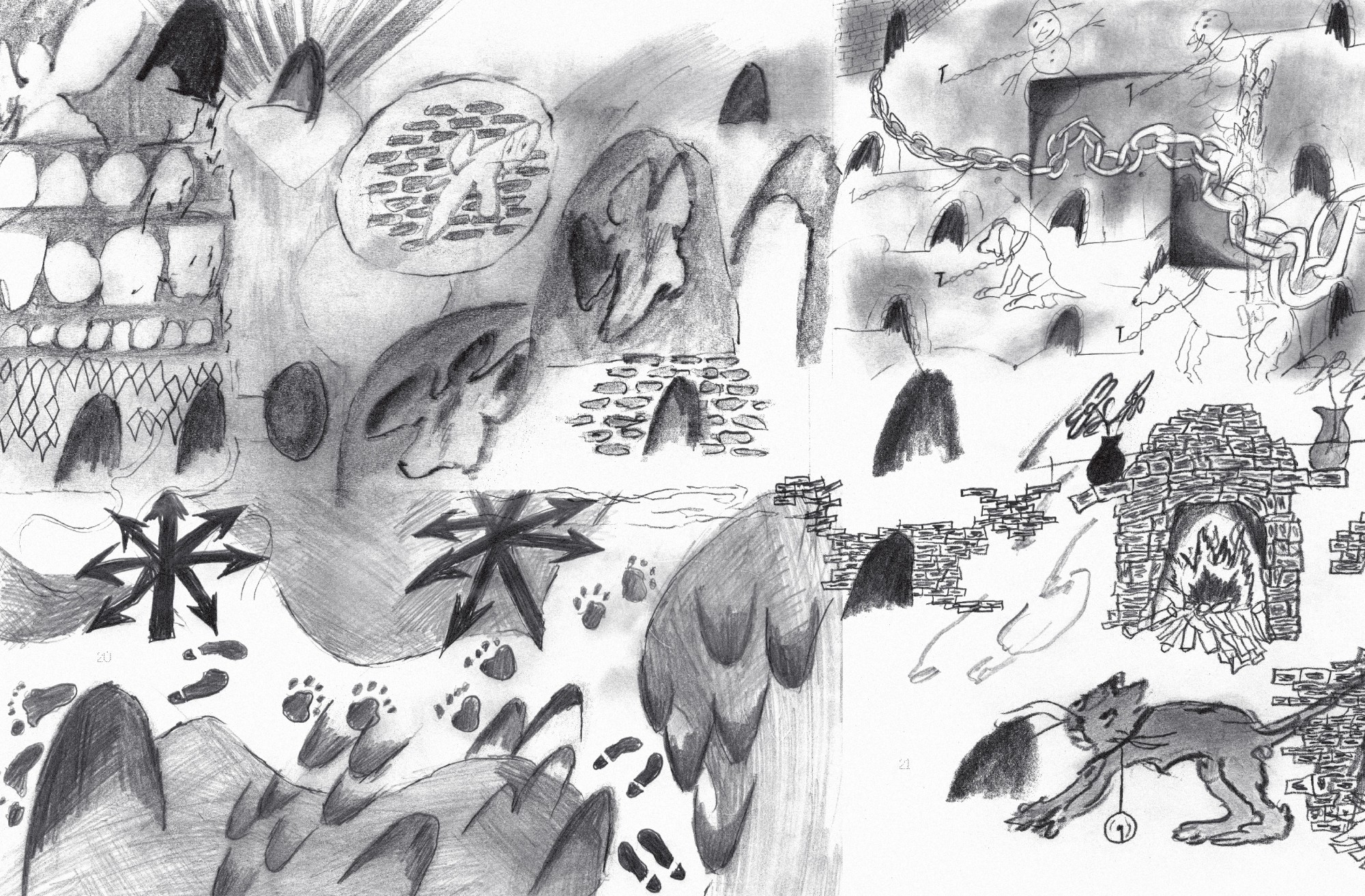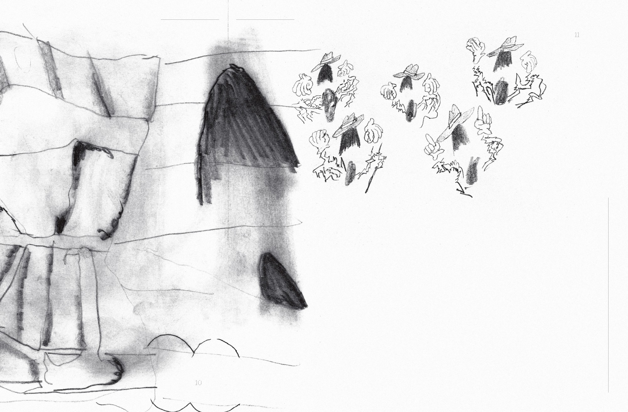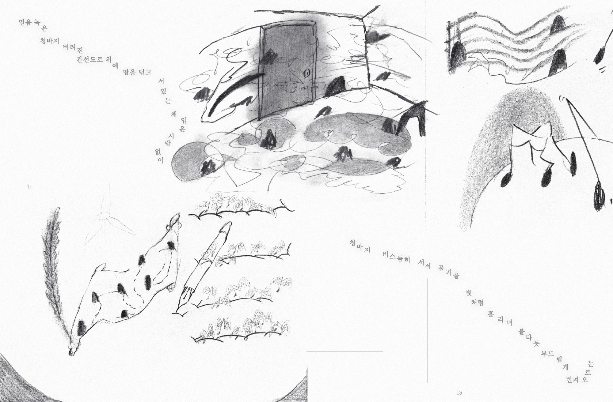 도시의 골목들, 울타리 쳐진 들판, 절벽, 구석진 담벼락, 어디로 통하는지 알 수 없는 수많은 동굴과 구멍과 문을 건너며 번쩍이는 미러볼, 뭉개진 로드콘, 모닥불에 모여든 생쥐들, 우비 쓴 사람들, 불 꺼진 전구, 깡총깡총 뛰어가는 연필, 노래 부르는 주사위, 뜯어진 철망, 풀 죽은 강아지와 긴장한 고양이, 목 묶인 눈사람, 웃는 해골과 풍선같은 선인장, 날아다니는 돈다발, 흔들리는 꽃들과 마주치고 끊이지 않는 폭발음과 소음과 음악과 웅성거림을 듣는 모험의 그림 동화.